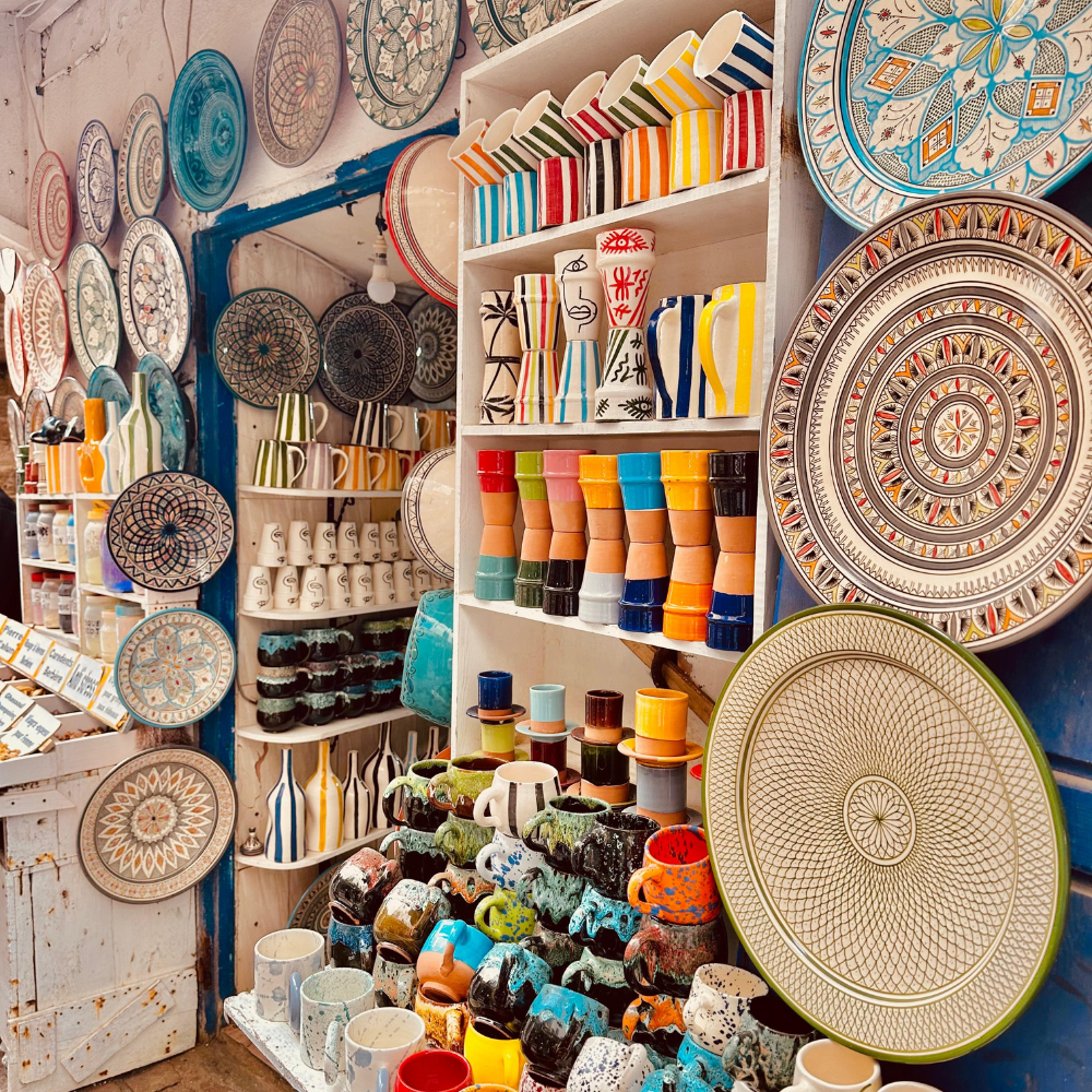Essaouira ist eine Stadt voller Traditionen und Aromen. Wir hatten das Glück, den Souk zu entdecken, ein Labyrinth lebhafter Gassen, in denen sich die Düfte von Gewürzen, die Farben der Berberteppiche und der Klang der Handwerker, die mit Terrakotta arbeiten, vermischen.