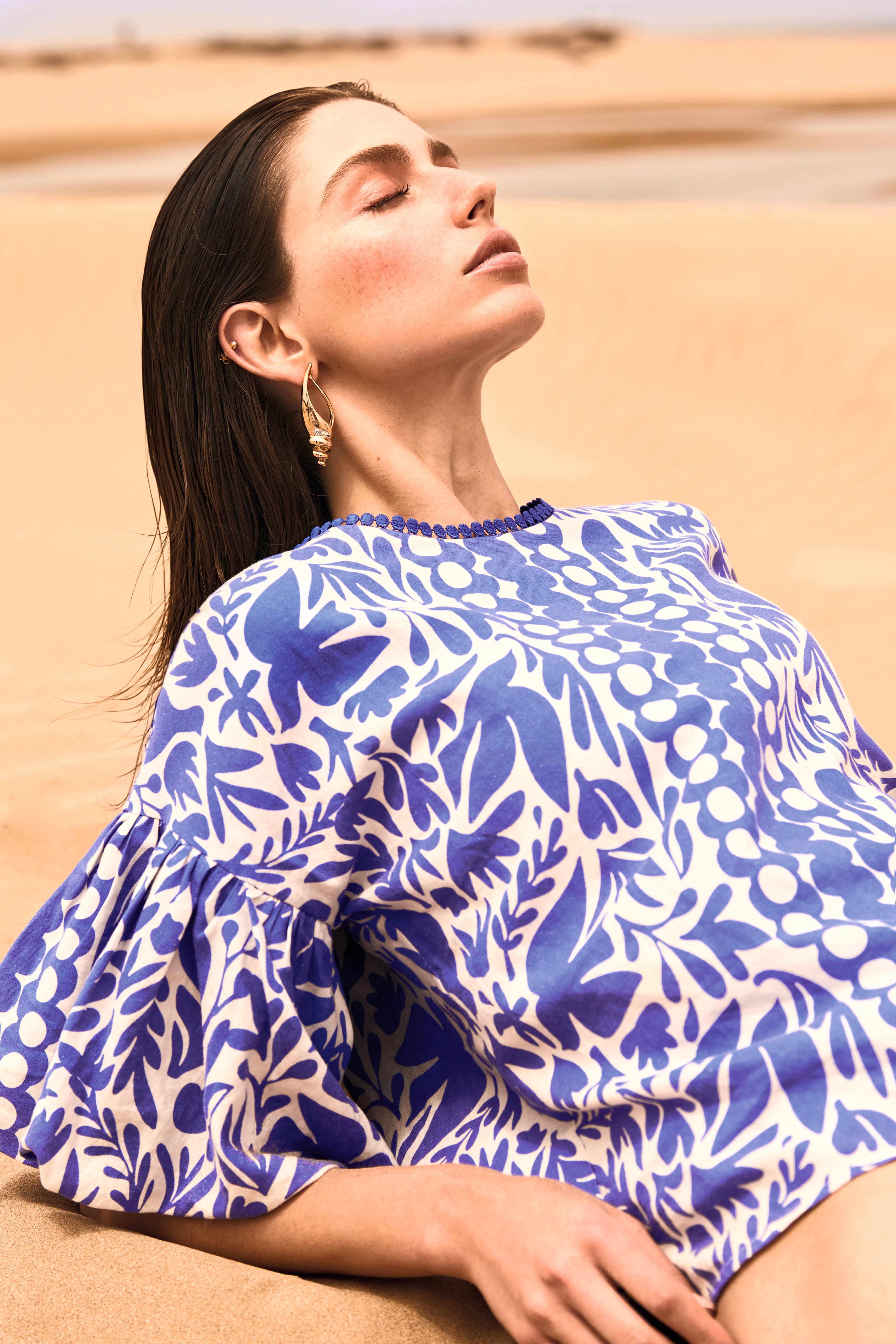 Einige Kilometer von Essaouira entfernt folgten wir unserem Instinkt. Weit weg vom Trubel fanden wir uns umgeben von Dünen, Stille und einem fast unwirklichen Licht wieder. Dort haben wir einen Teil der Kollektion Frühling/Sommer 2025 eingefangen. Nichts war festgelegt: nur die Natur um uns herum und der Wind, der in perfekter Resonanz mit dem Geist der Saison wehte. Dieser eingefrorene Moment erinnerte uns daran, warum wir es lieben zu kreieren: um dem Unvorhergesehenen, der Bewegung, dem, was sich nicht kontrollieren lässt, Raum zu geben.